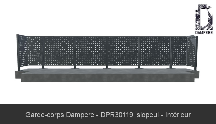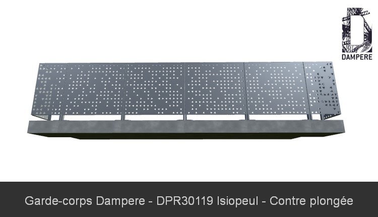 Pour affimer la bonne tenue mécanique du moucharabieh abstrait appliqué au panneau de remplissage de garde corps Isiopeul, notre Bureau d'Etudes vous conseille d'optimiser la tôle découpe laser en Acier Galvanisé par une épaisseur de 15/10 ème pour répondre à la norme de sécurité garde corps NF P 01- 013. La réalisation d'essai destructif au sac sur une charge dynamique par choc de corps mou au diamètre de 50 cm en application 600 Joules, applique un impact au centre géométrique du panneau moucharabieh sur la balustrade.Opacité du balcon