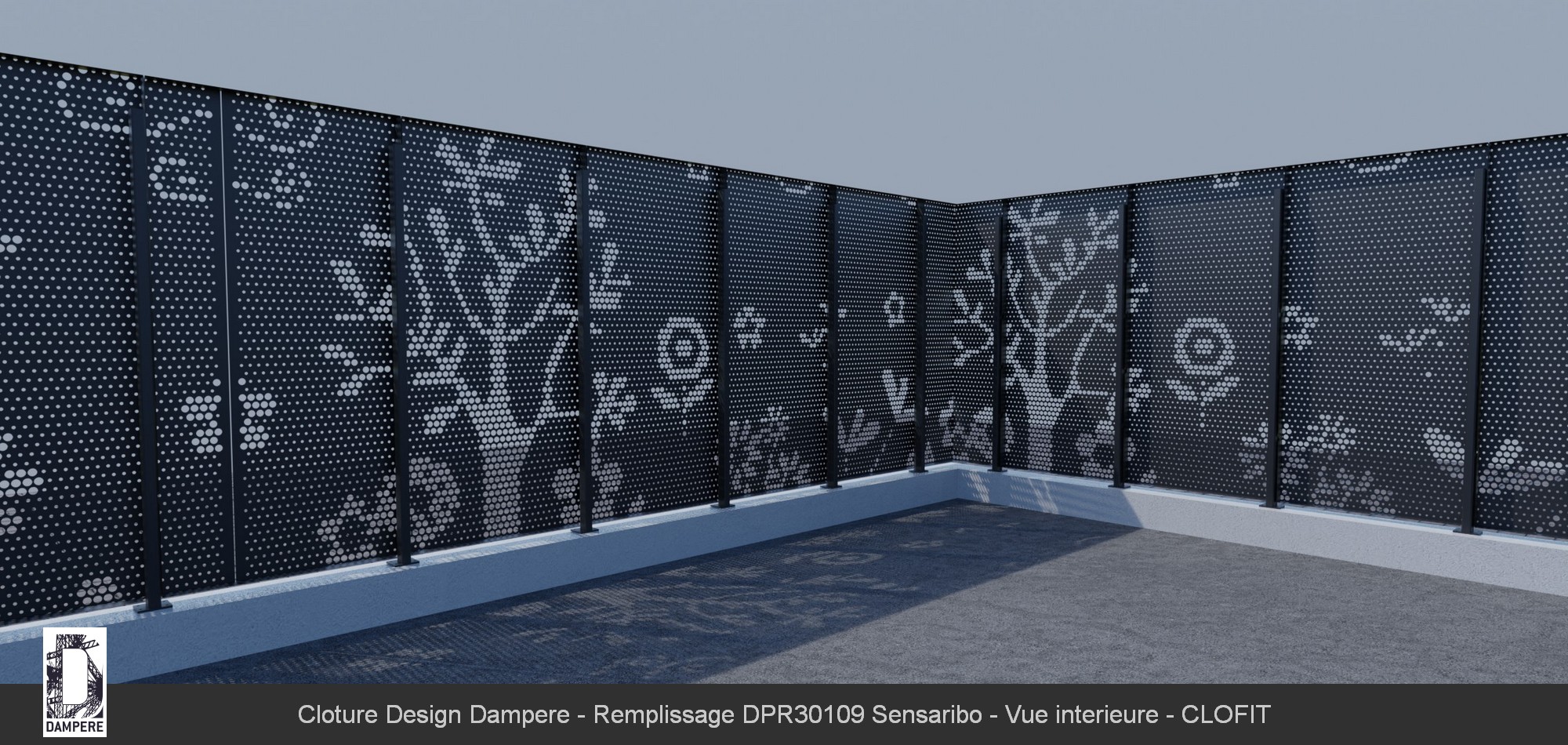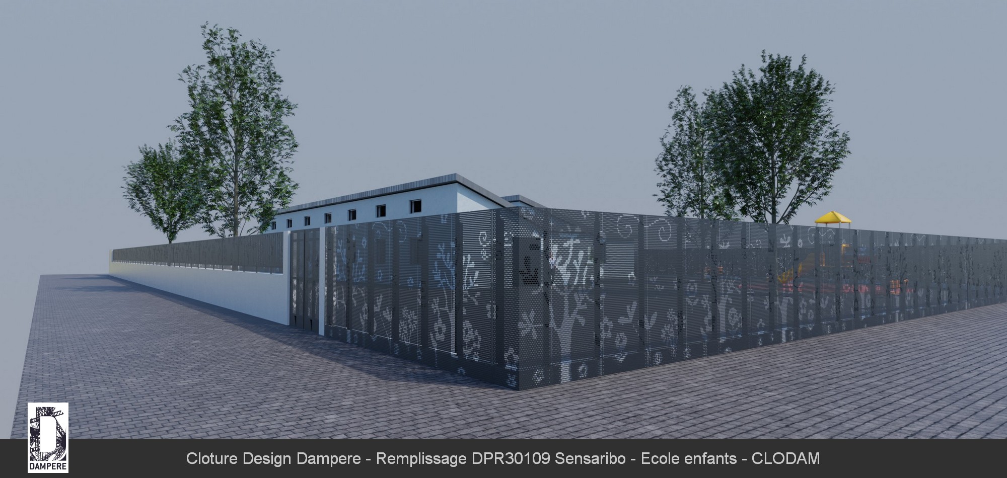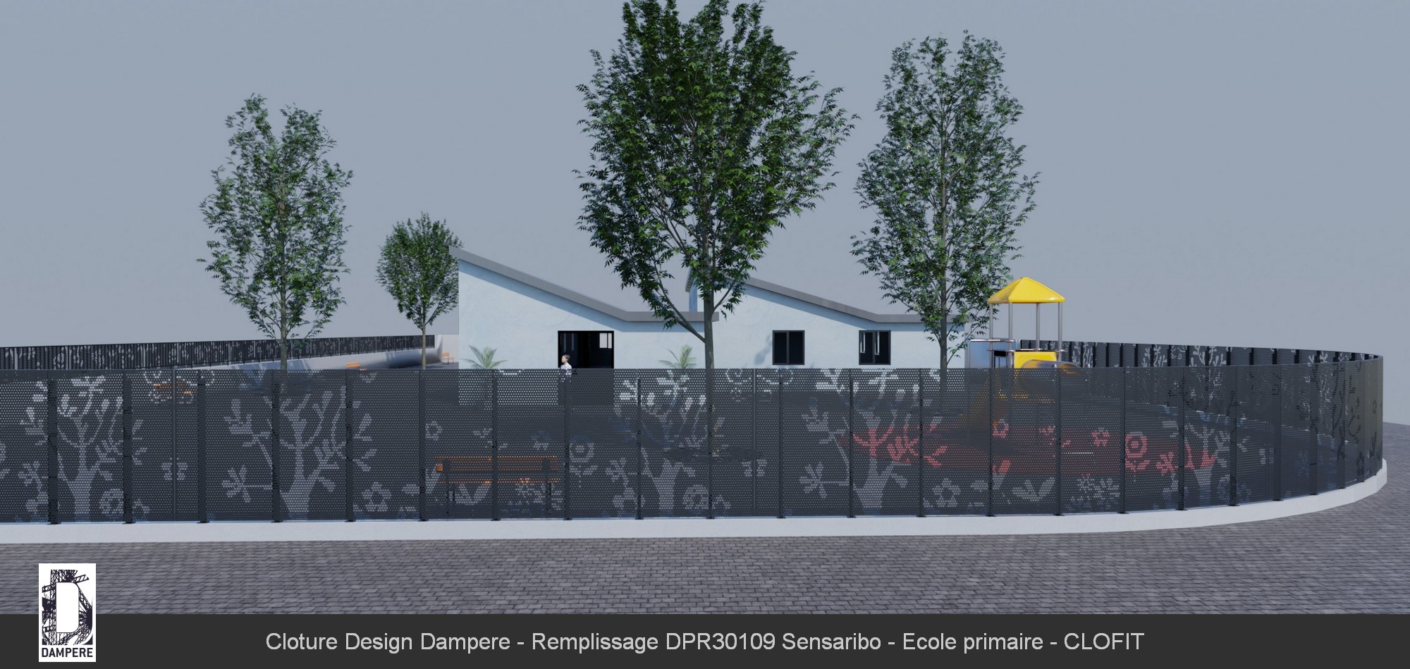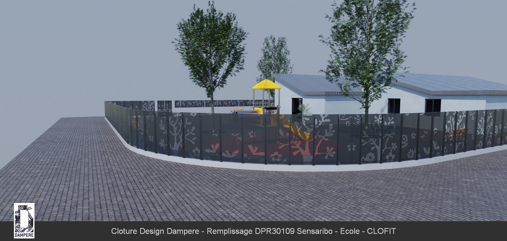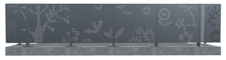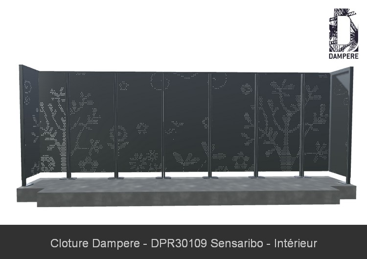 La clôture en acier Sensaribo de DAMPERE s’intègre parfaitement dans des environnements tels que les parcs et jardins, où elle combine esthétisme et fonctionnalité. Grâce à son motif floral distinctif, elle ne se contente pas de délimiter un espace, mais participe activement à l’embellissement du paysage, tout en assurant une protection efficace. Sa capacité d'occultation la rend idéale pour isoler visuellement des zones sensibles, telles que les aires de jeux sécurisées pour les enfants, où la confidentialité et la sécurité sont primordiales. Dans ces espaces, Sensaribo crée une barrière à la fois visuelle et physique, protégeant les enfants des regards indiscrets tout en assurant leur sécurité. Le motif floral en partie basse ajoute une dimension ludique et accueillante, transformant la clôture en une extension naturelle de l'environnement, presque comme un jardin stylisé. Les perforations soigneusement agencées laissent passer la lumière tout en offrant une occultation suffisante pour garantir que les activités à l'intérieur de l'aire de jeux ou du parc restent protégées de l'extérieur. La Sensaribo devient ainsi une solution incontournable pour ceux qui cherchent à combiner sécurité, intimité et une touche décorative. Son design naturel et ses qualités d'occultation en font un choix parfait pour protéger des espaces verts tout en conservant leur beauté et leur ouverture sur l’extérieur.Effet produit