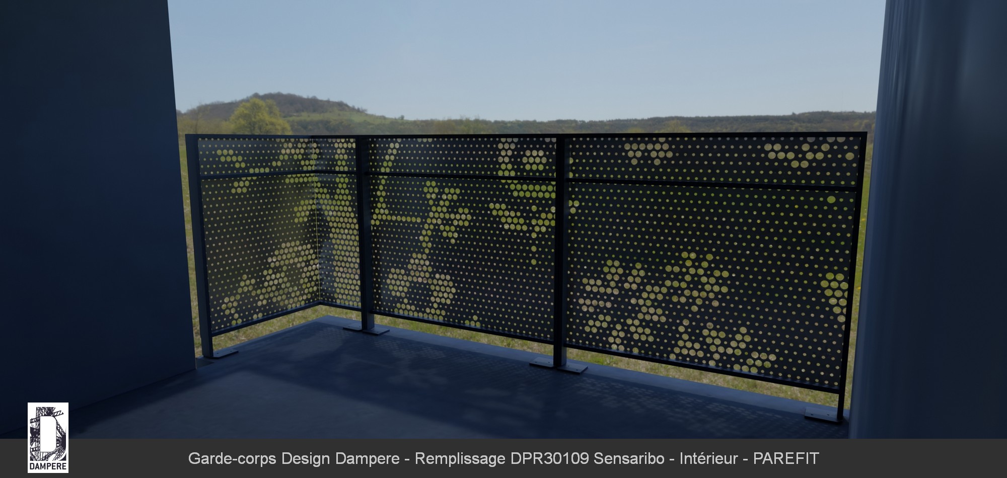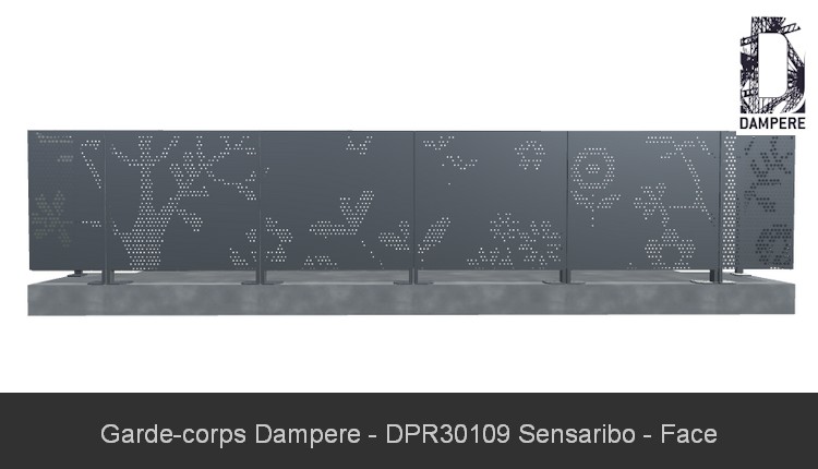 Le garde-corps de balcon Sensaribo de DAMPERE incarne un univers poétique et ludique, où l'imagination d'un enfant prend vie à travers un paysage floral stylisé. Ce garde-corps, composé de motifs végétaux abstraits inspirés de dessins candides, transforme une simple balustrade métallique en un élément à la fois protecteur et esthétiquement captivant. Les perforations rondes, qui forment le cœur du design, évoquent un jardin rêvé, avec des formes simples et charmantes qui apportent une touche de légèreté et de créativité à l'espace. Le motif dense et ludique du garde-corps Sensaribo est pensé pour offrir une occultation optimale, parfaite pour les balcons urbains où la vie privée est essentielle. La partie haute du panneau, plus opaque grâce à la disposition resserrée des perforations, protège efficacement contre les regards indiscrets des voisins ou des passants, tout en évitant une sensation d'enfermement. Cet équilibre entre protection et ouverture fait de ce garde-corps un choix idéal pour les balcons d'appartements où l'intimité et la vue sur l'extérieur doivent coexister harmonieusement. En partie basse, la tôle perforée reste plus légère, permettant à la lumière de filtrer à travers les formes végétales et créant ainsi des jeux subtils d’ombres et de lumière sur le sol du balcon. Ce design permet au garde-corps de bloquer les regards extérieurs tout en baignant l'espace intérieur d'une douce lumière naturelle, accentuant la sensation de confort et de sérénité. L'occultation est progressive, préservant l’intimité des occupants lorsqu’ils sont assis tout en leur offrant une vue partielle sur l'extérieur. Le garde-corps décoratif Sensaribo devient ainsi bien plus qu'un simple élément fonctionnel. Avec ses motifs floraux stylisés et son design empreint de poésie, il invite à la rêverie tout en assurant une protection optimale.Usages