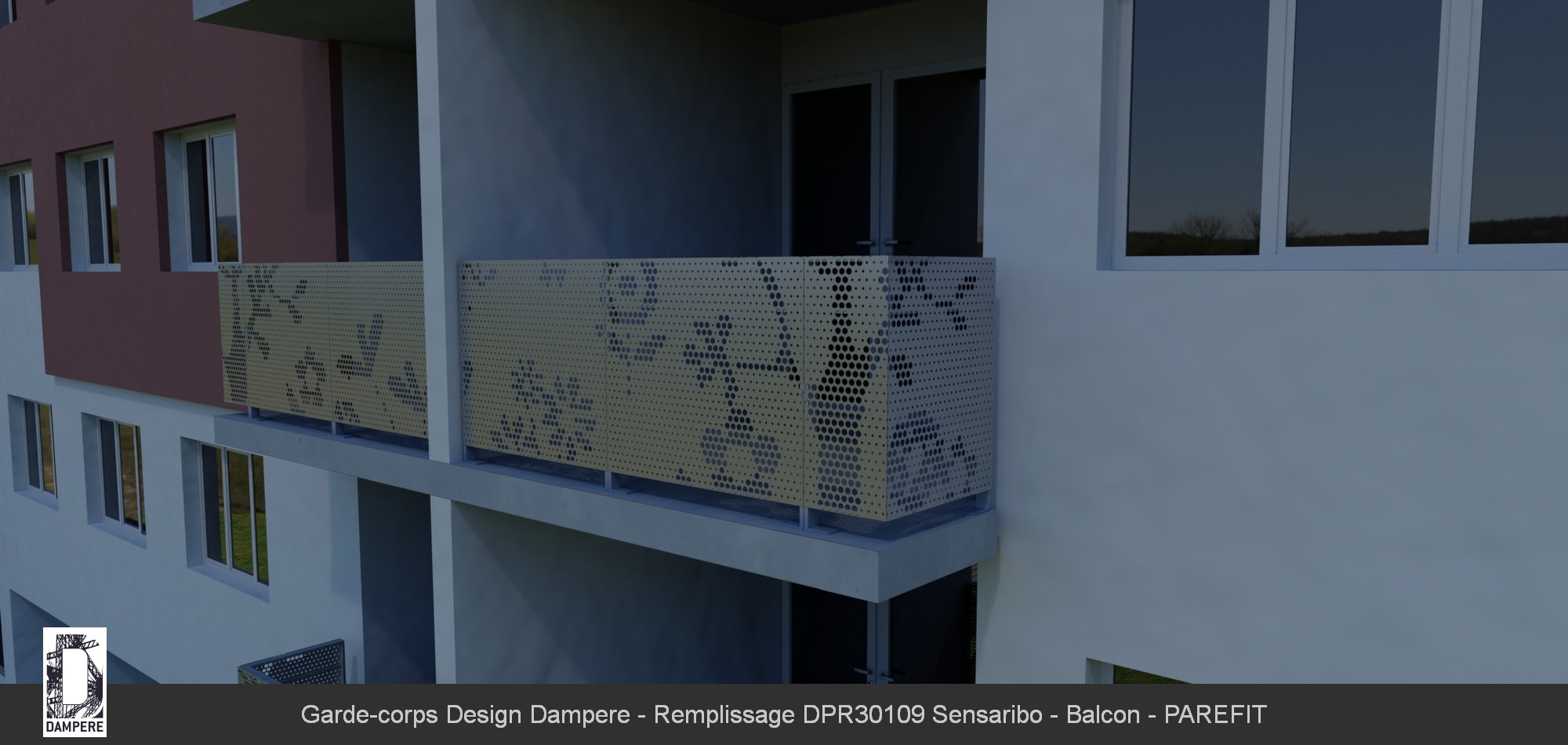 Le garde-corps Sensaribo de DAMPERE est idéal pour les balcons urbains, en particulier dans des logements sociaux ou des environnements où l'intimité et la gestion visuelle des objets au sol sont cruciales. Son motif floral stylisé, avec des perforations rondes en partie basse, permet de masquer efficacement les éléments peu esthétiques disposés sur la dalle, tout en offrant une certaine transparence qui laisse passer la lumière naturelle. Cette occultation partielle crée une barrière visuelle subtile qui protège l'intimité des occupants, empêchant les regards extérieurs d'apercevoir les objets comme les pots de fleurs, chaussures ou autres équipements rangés sur le balcon. La partie haute du garde-corps, plus épurée, permet une ouverture visuelle vers l’extérieur, tout en garantissant une protection contre les regards indiscrets. Le Sensaribo allie ainsi esthétisme et fonctionnalité, transformant le balcon en un espace plus ordonné, agréable à vivre, tout en préservant l’intimité et le confort des occupants.Effet produit