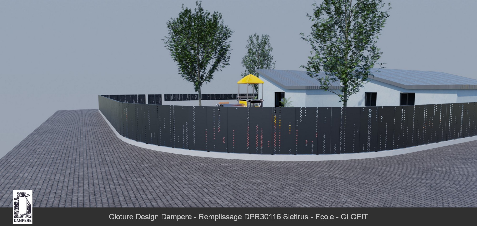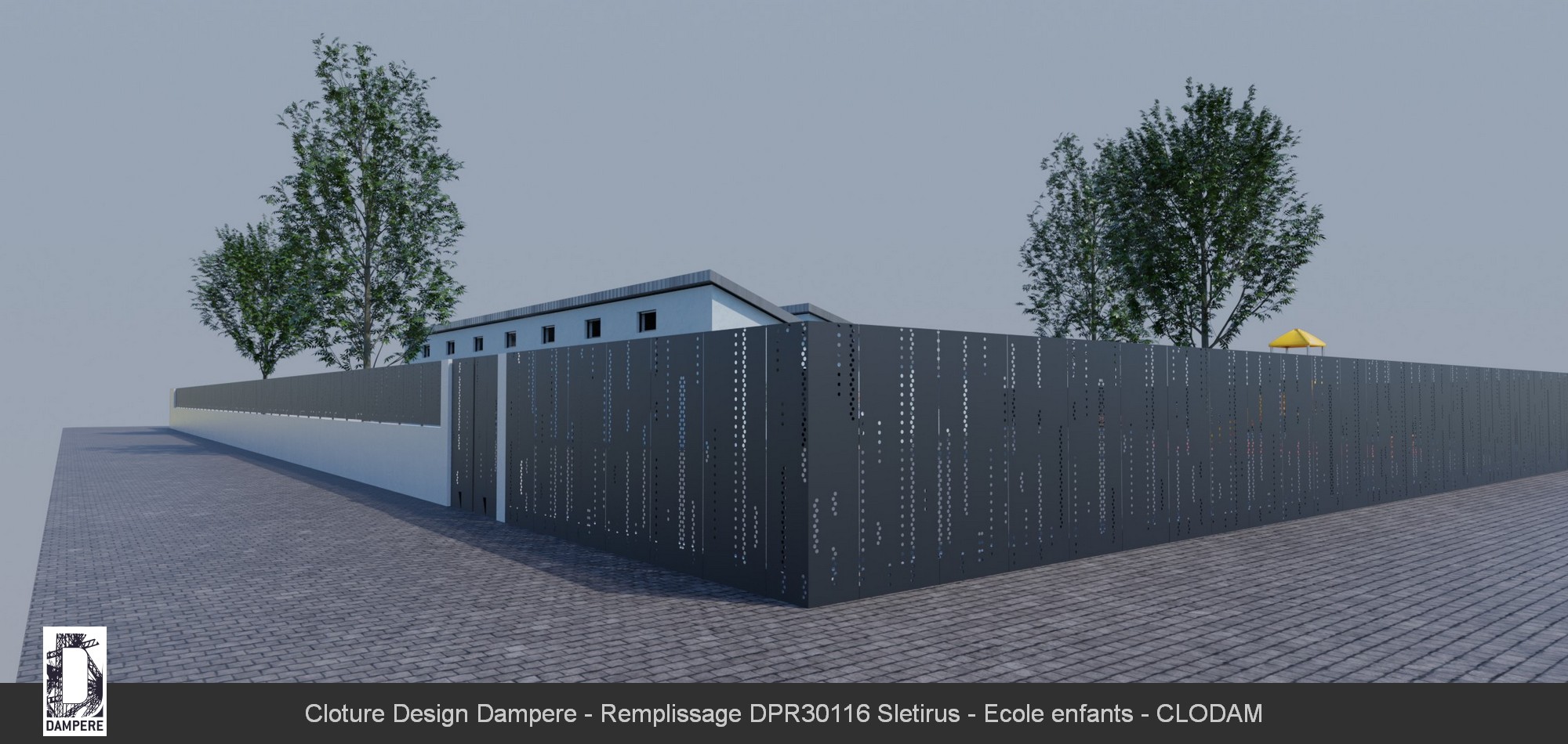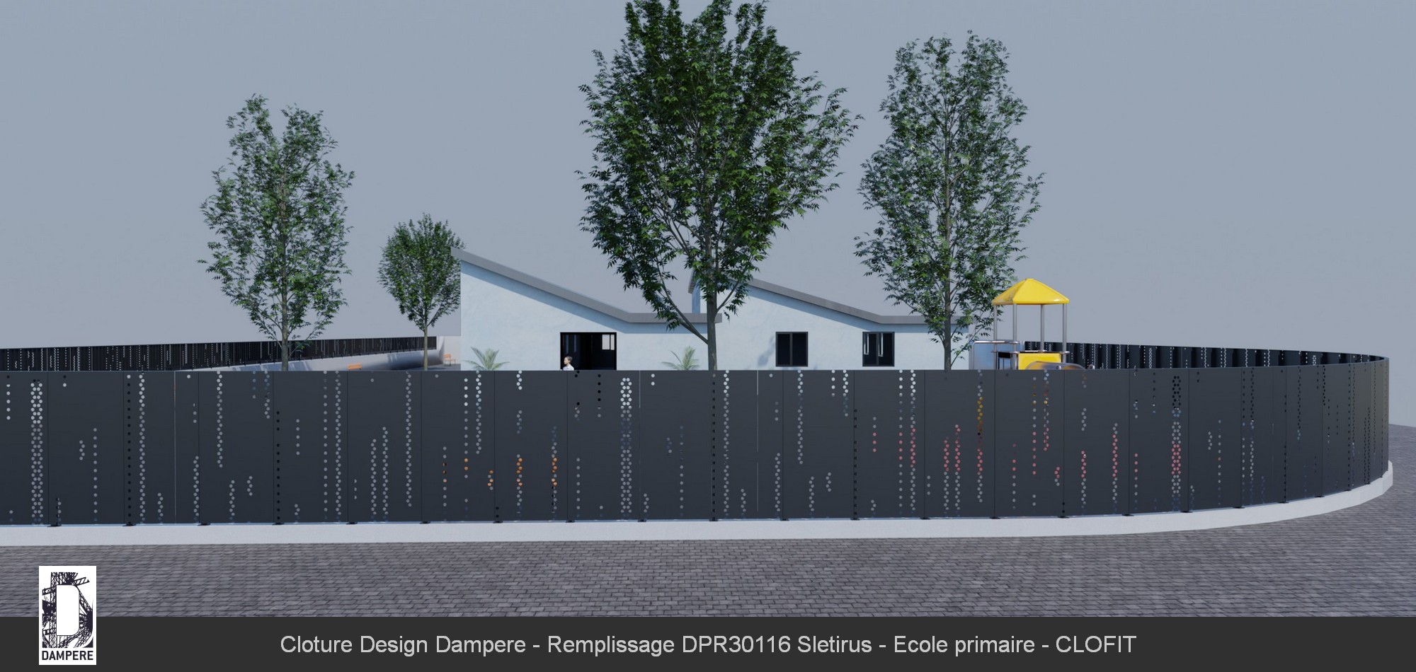 Pour utiliser la tôle perforée SLETIRUS comme en panneau de clôture, il faut tenir compte de son opacité forte des lignes verticales segmentées. La disposition verticale des segments ajourés crée une sensation d'élancement et de hauteur sur le design de la clôture. Cet effet amplifie la perception de l'espace de la clôture d'école, agrandi le Bâtiment tout en offrant un aspect moderne et minimaliste sur les espaces extérieurs. Le design SLETIRUS sera personnalisé pour s’adapter aux dimensions spécifiques de la clôture par le configurateur disponible en ligne. La tôle décorative sera proposée dans différentes finitions de peinture RAL thermolaquée pour répondre aux exigences esthétiques et environnementales du PLU, avec la possibilité de choisir tous les RAL sans limite dans le design.Le conseil de l'équipe