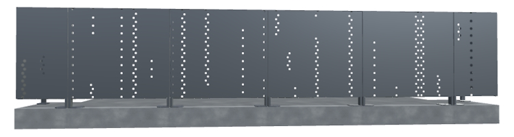 L'usage du motif Sletirus en panneau de cloture occultant convient sur un panneau en Acier Galvanisé d'épaisseur 1.5 mm avec pliage sur une hauteur de 180 cm. Cette disposition de la hauteur du poteau et l'entraxe entre panneau de 80 cm donnera une bonne résistance de la cloture opaque, que vous adapterez au scellement béton au sol selon la contrainte de la zone de vent et la solicitation urbaine de la clôture. Le fort degré d'opacité a pour effet d'augmenter la prise au vent, donc ajouter des jambes de force ou scellement plus important dans les zones fortement exposées aux rafales des vents. Prévoir une peinture anti-graffiti impérativement pour tous les sites urbains permettant de faciliter le nettoyage en cas de vandalisme.Effet produit