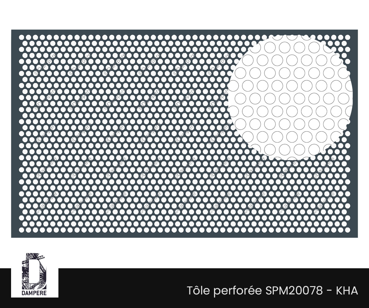 La tôle perforée standard Kha DAMPERE permet de protéger tout en laissant passer l'air et le regard. À partir d'un motif simple à trou rond répétitif de diamètre 15 mm, le fort taux de transparence dépassant 50% de vide permet de ventiler fortement un parking. Loin d’être la seule application décorative, voici un aperçu des autres usages. En panneaux de clôtures métalliques, la tôle perfo R15T20 est souvent utilisée pour des clôtures ou des écrans dans des environnements industriels ou commerciaux. La disposition en quinconce assure une robustesse accrue tout en offrant une transparence suffisante pour permettre le passage naturel du vent et de la lumière, protection et esthétique simple. En architecture, ce motif est idéal pour des projets de façades où l’on souhaite combiner esthétique industrielle et fonctionnalité. Les façades perforées permettent de créer des jeux d'ombres et de lumière tout en favorisant une ventilation naturelle des bâtiments. Le ratio d’ouverture et la disposition des trous permettent de l’utiliser comme brise-vue léger, où la circulation d'air reste forte tout en occultant légèrement la vue directe. Cela le rend également adapté à l’application sur les panneaux de remplissage de gardes-corps de balcon, donnant lieu à un remplissage partiel ou un habillage intégral du nez de dalle à l’anglaise par la perforation R15T20. En décoration d’intérieure, grâce à sa géométrie classique et régulière, cette grille régulière R15T20 peut également être utilisée comme panneau décoratif, offrant une apparence moderne et épurée qui s'intègre bien dans divers styles de design d’intérieur. En raison de son pourcentage de vide, la tôle R15T20 est également utilisée dans des solutions acoustiques ou en faux plafonds, contribuant à la réduction du bruit tout en améliorant l’esthétique d’un espace.Le conseil de l'équipe